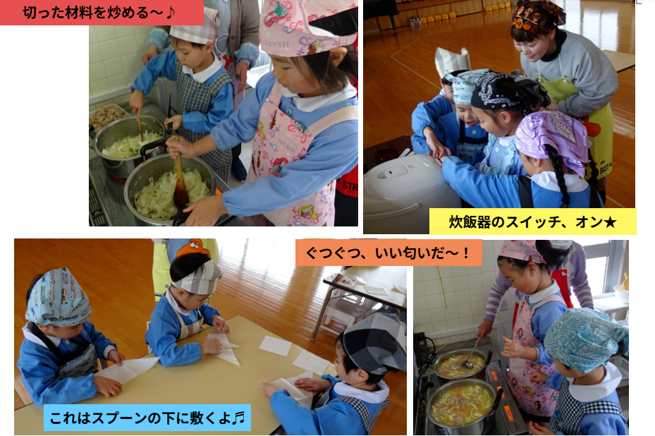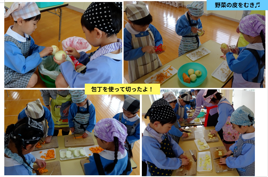 幼稚園で工作やゲームをしたり、